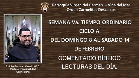 - IIIa. SEMANA DEL TIEMPO ORDINARIO. DEL LUNES 26 AL SÁBADO 31 DE ENERO COMENTARIO BIBLICO LECTURAS MISA DEL DÍA. P. JULIO GONZÁLEZ CARRETTI.