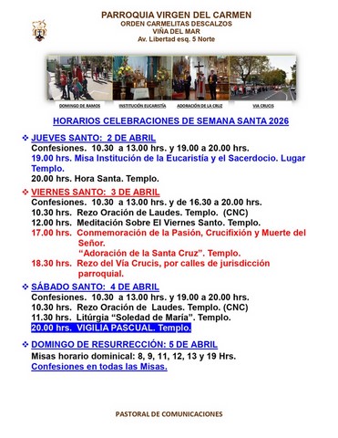 - HORARIO DE CELEBRACIONES DE SEMANA SANTA 2026 JUEVES 2 AL DOMINGO 5 DE ABRIL.