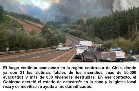 - ACI PRENSA. CON ORACIÓN Y AYUDA CONCRETA, LA IGLESIA CATÓLICA SE MOVILIZA POR LOS AFECTADOS DE LOS INCENDIOS EN CHILE.